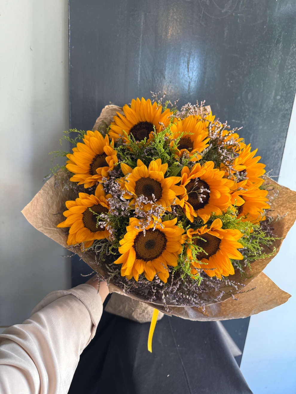 Sunshine Bouquet, pozitif enerji ve neşe veren tasarımları sevenler için Nora Flowers tarafından özenle hazırlanmıştır. Taptaze ayçiçekleri, mor limonyumlar ve doğal yeşilliklerle bir araya getirilerek sıcak, enerjik ve hacimli bir görünüm oluşturulmuştur.